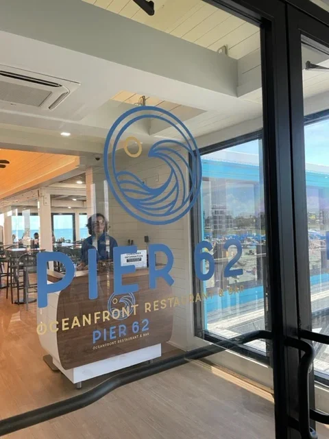 The updated Pier 62 logo reflects a modern, minimalist approach, trading the playful character-driven aesthetic of Pelican’s Bar & Grill for a clean, coastal design. While the original logo leans heavily on vibrant colors, cartoon imagery, and a casual, tropical vibe, Pier 62 embraces simplicity with a wave-inspired emblem and clean typography that speaks to a more upscale waterfront dining experience. This shift marks a rebranding from kitschy fun to refined coastal sophistication.